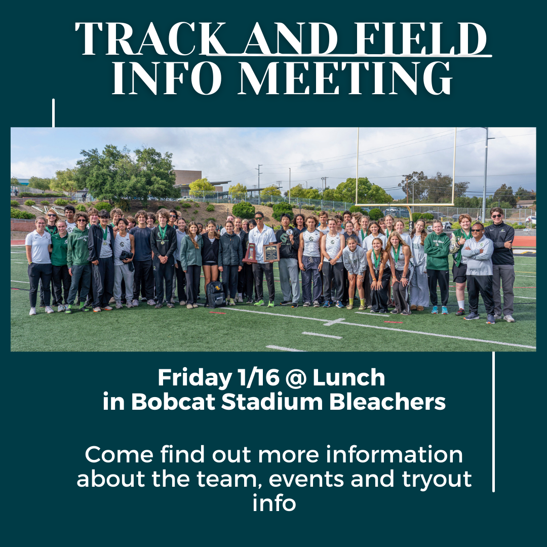 Any students who are interested in trying out for the track and field team this spring, there is an informational meeting THIS Friday 1/16 in the Bobcat Stadium at Lunch. See you there!